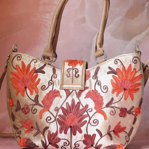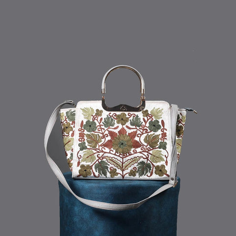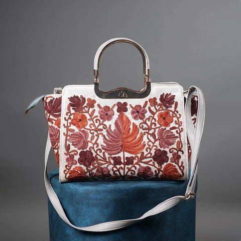 Poshkaar Design Aari Embroidered Creame Hand Bag
