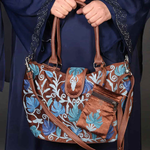 Multi Color Chinar Aari Embroidered Brown Hand Bag