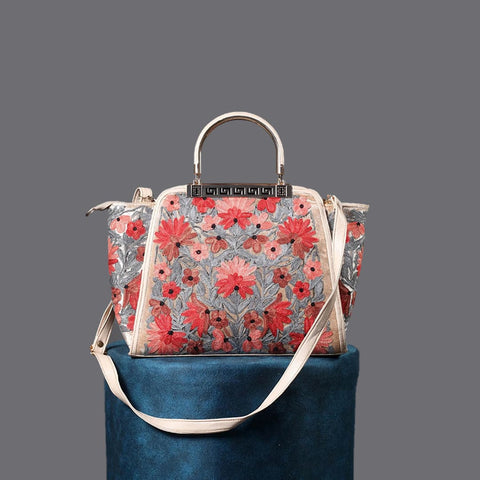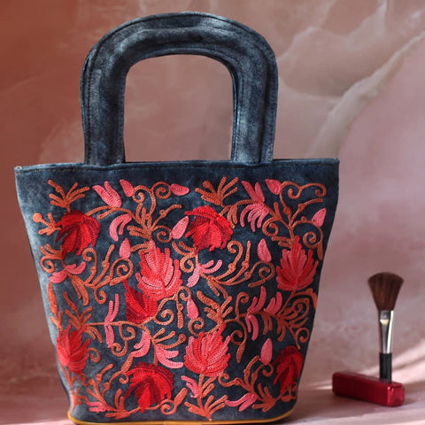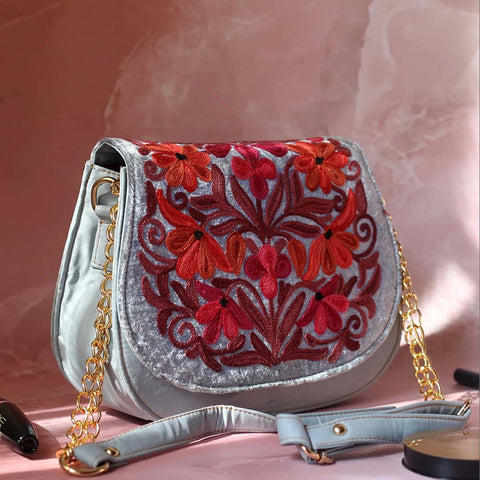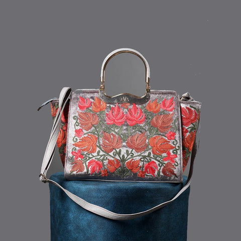 Posh Phulai Aari Embroidered Grey Hand Bag