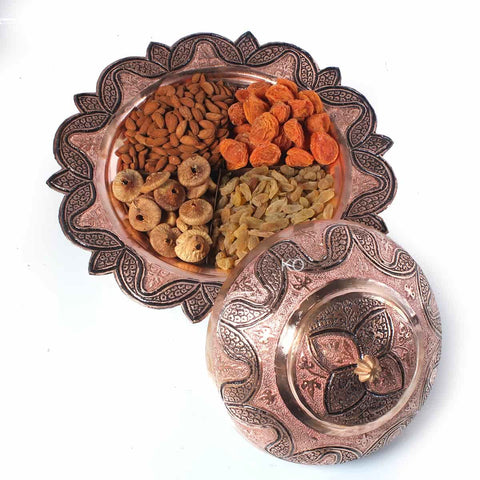 Hand-Engraved Copper Dry Fruit Bowl (Set of 1)