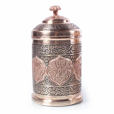 Hand-Engraved Copper Masala Box (Set of 6 pcs)