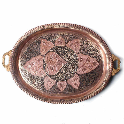 Hand-Engraved Copper Serving Tray (Set of 1 pc)