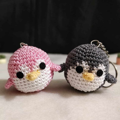 Mini Pink and Grey Baby Penguins Crochet Keychains