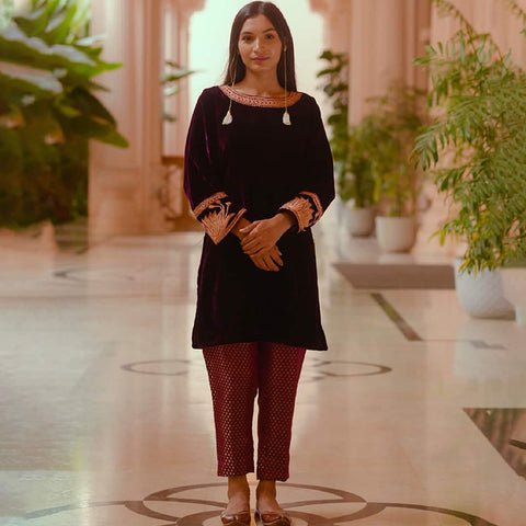 | Urzuv is a fashion label that presents the finest works of kashmiri craft. It is a small step towards putting the spotlight on Kashmir’s craftsmanship, which is rarely spoken about. It aims at bringing a fresh perspective to a generations-old craft by creating new-age designs while keeping the tradition alive. Their conceptualisation and tailoring are done in Bengaluru and the hand embroidery is executed through a team of artisans in Kashmir. |