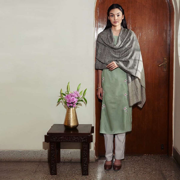 A perfect balance of style and comfort, the Checks Pashmina is a chic inclusion to your wardrobe. A work of contemporary design on a grey and black palette, a must have monochrome accessory for your closet.