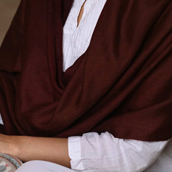 This coffee colored Pashmina stole is the perfect accessory for any outfit. Made from soft and luxurious Pashmina wool, it will keep you warm and cozy on chilly days. The rich coffee color adds a touch of elegance and sophistication to any ensemble. The generous size allows you to wrap it comfortably around your shoulders. It's perfect for adding a pop of color to a neutral outfit, or complementing a more bold look. Whether you're running errands or heading to a formal event, this Pashmina stole is sure to be your new go-to accessory.