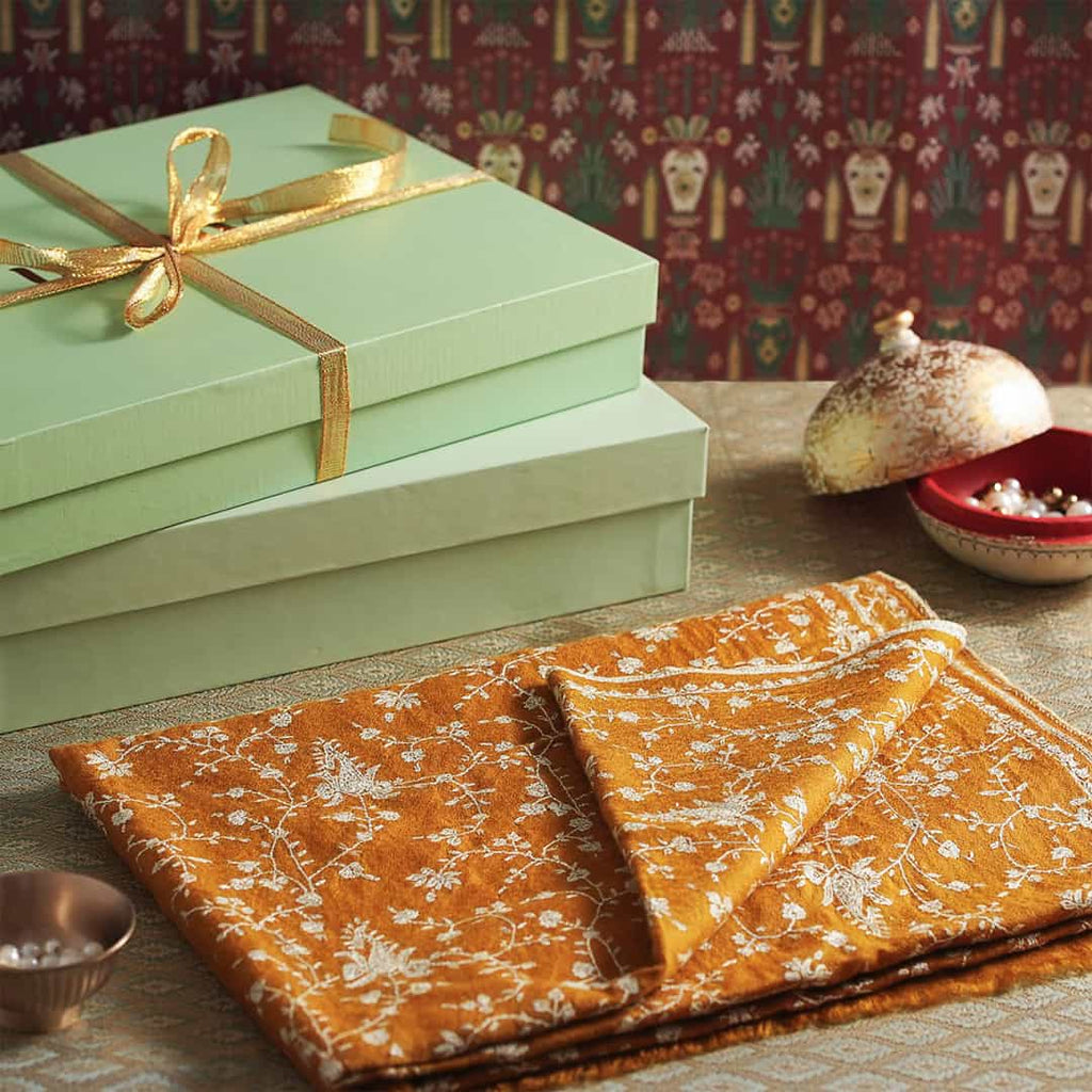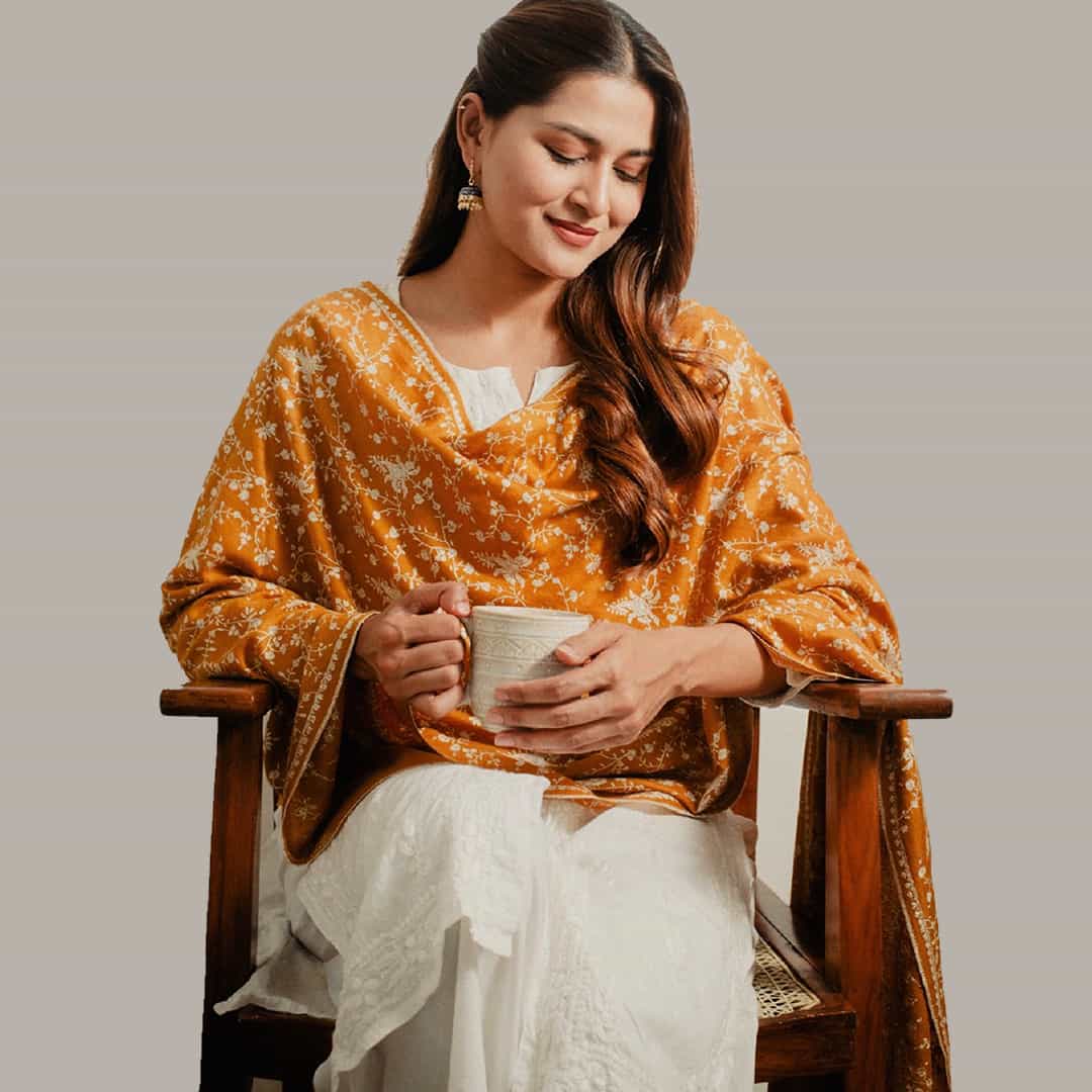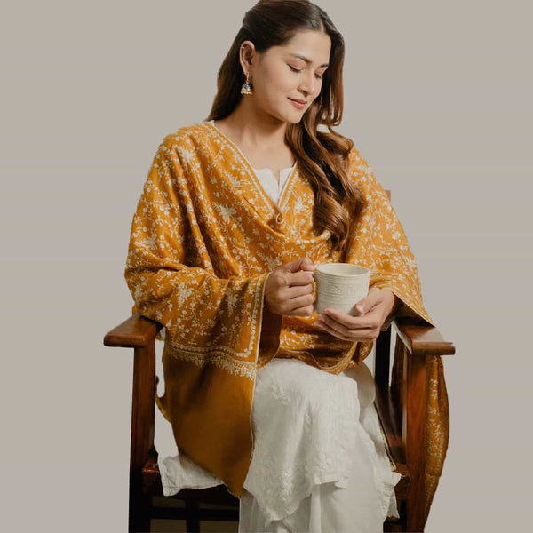 Mustard Sozni Pashmina Stole | Hand Embroidered