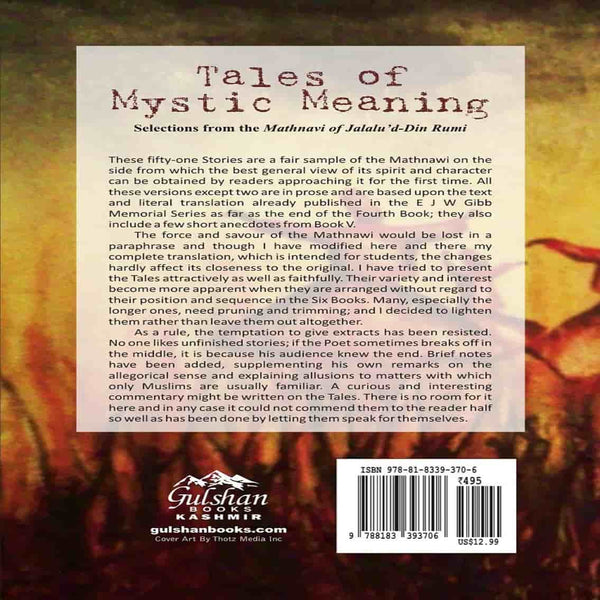 These fifty-one Stories are a fair sample of the Mathnawi on the side from which the best general view of its spirit and character can be obtained by readers approaching it for the first time. All these versions except two are in prose and are based upon the text and literal translation already published in the E J W Gibb Memorial Series.
