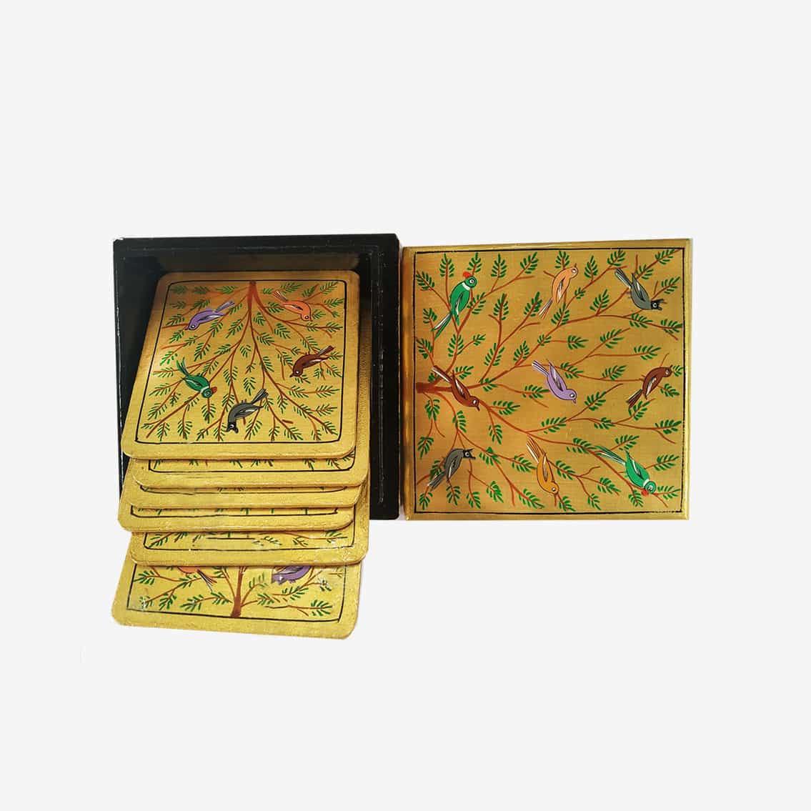 Tree Of Life Square Paper Mache Coaster Set (Assorted)